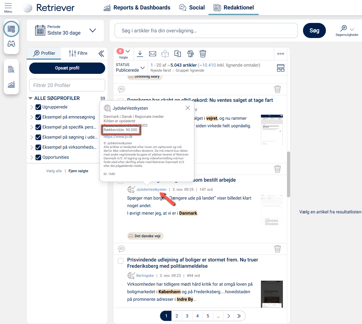 Rækkevidde er en estimeret værdi af potentielle læsere/seere/lyttere for hver enkelt omtale.