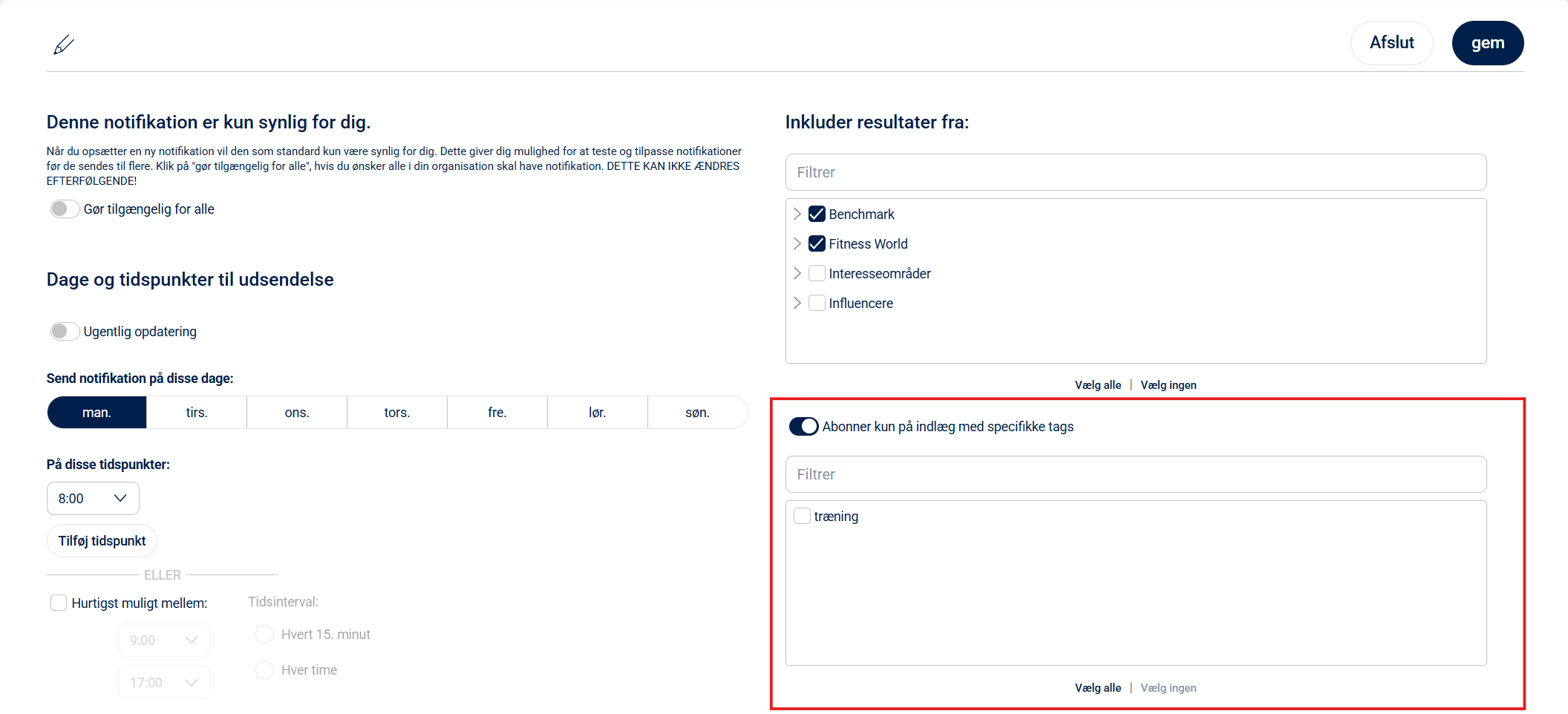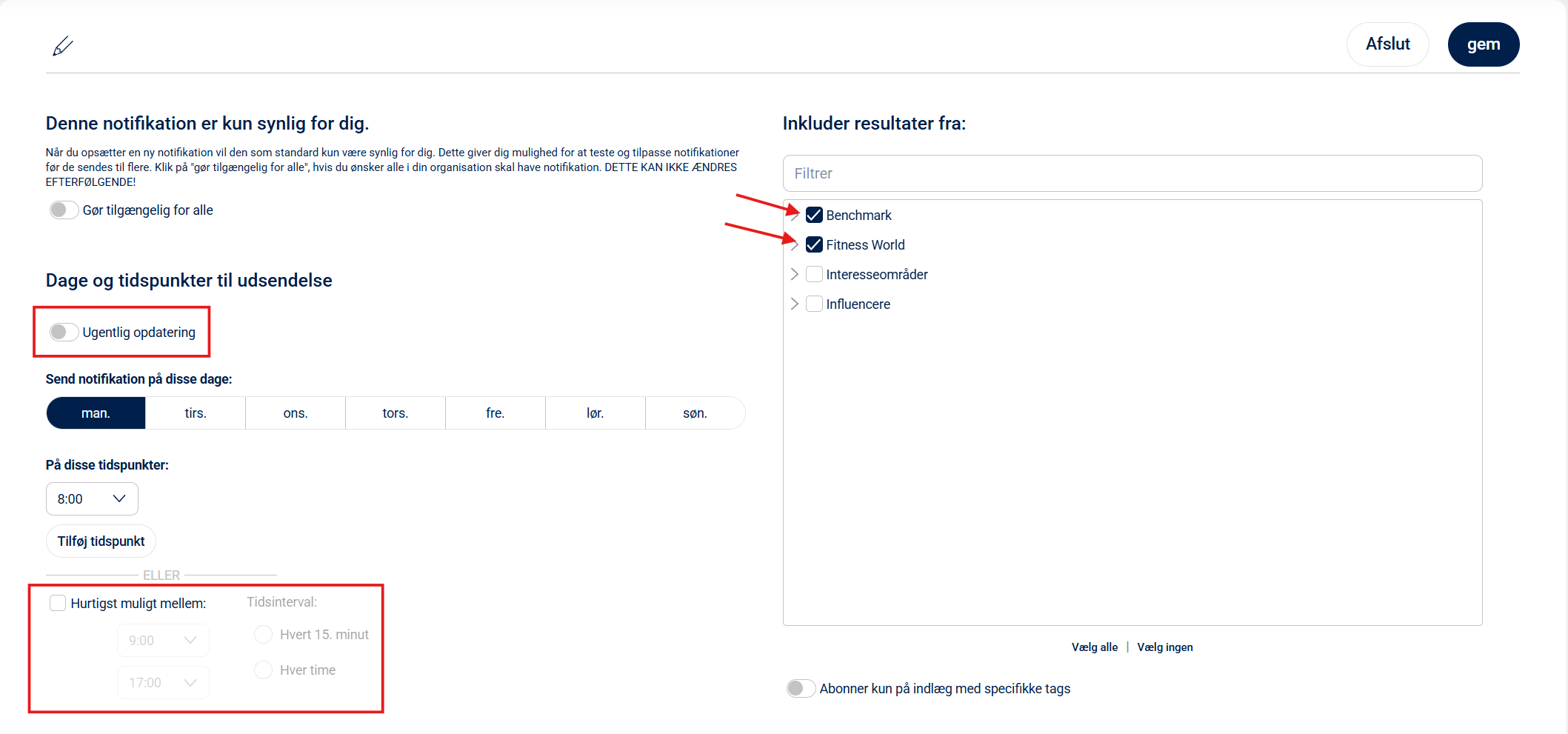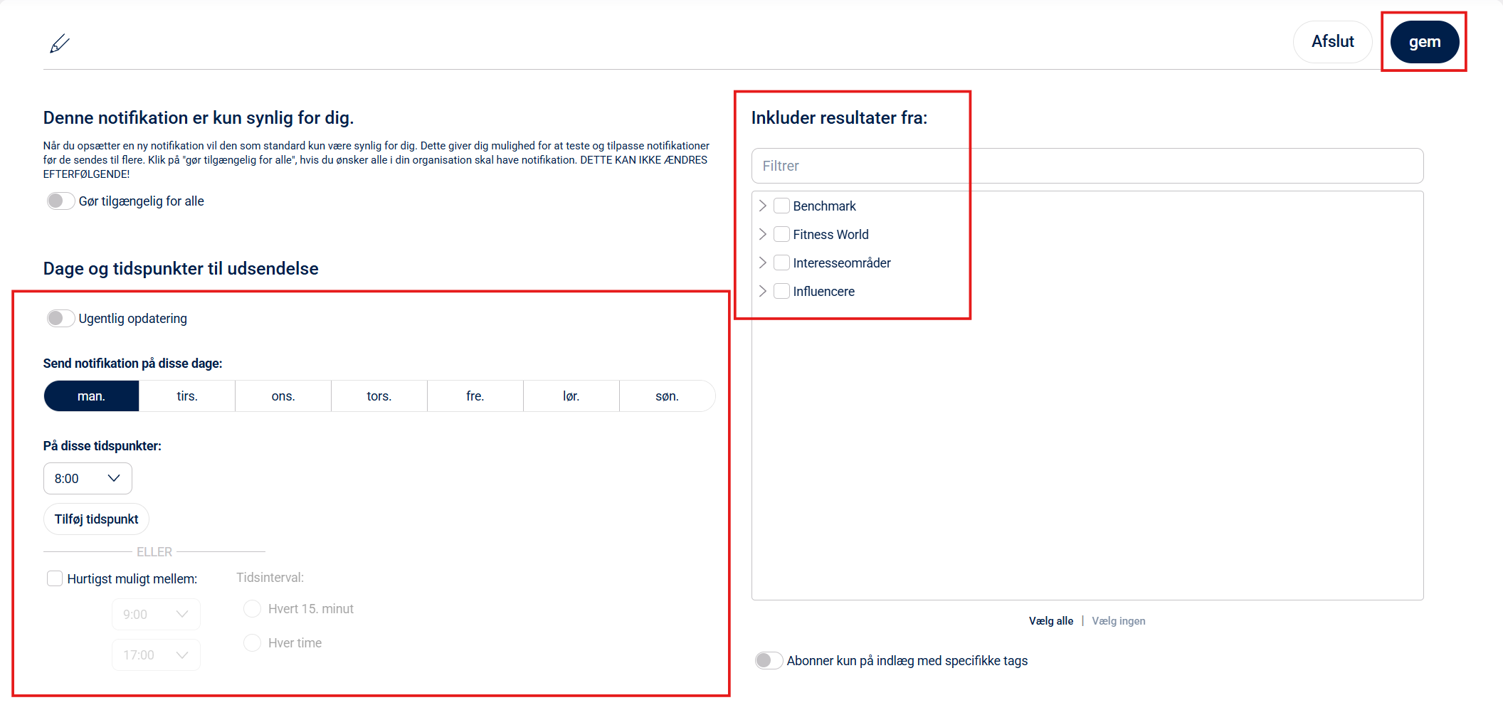 Under "Inkluder resultater fra" kan du også vælge at overvåge forskellige dele af projektet, f.eks. en specifik søgning eller et specifikt marked.