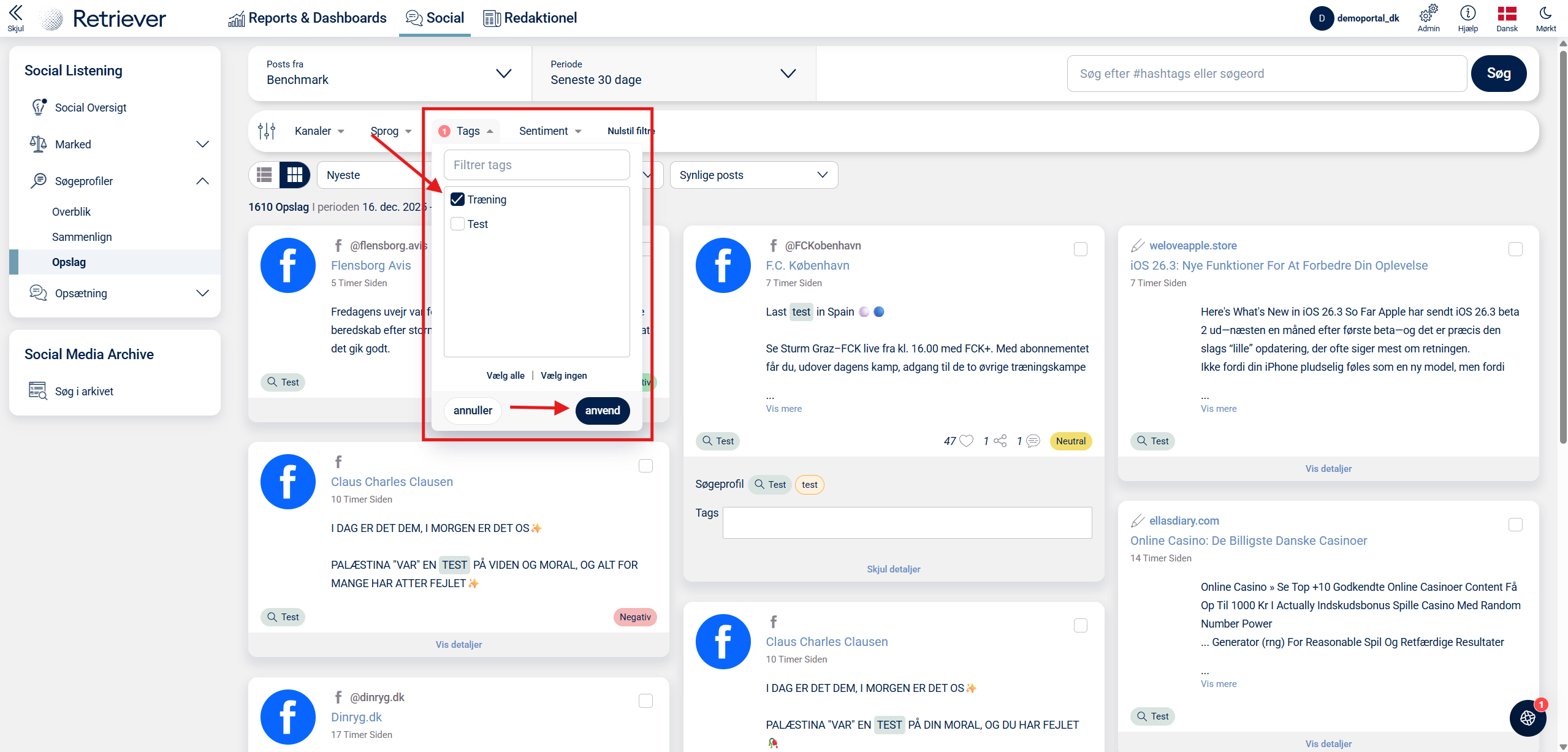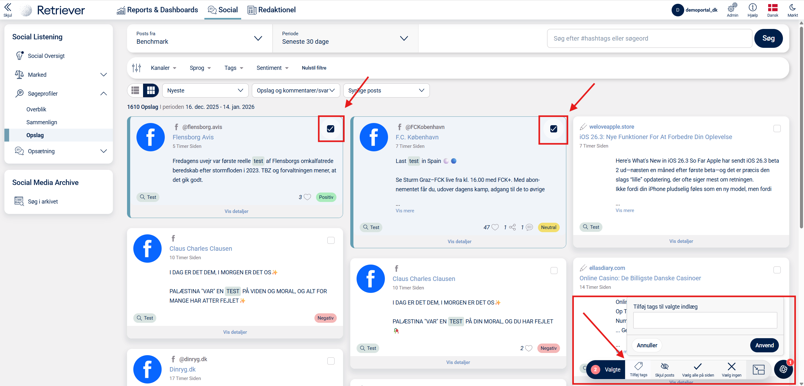 I Listen er det muligt at tagge specifikke posts for at lette filtrering og organisering af overvågningen. Sådan gør du: