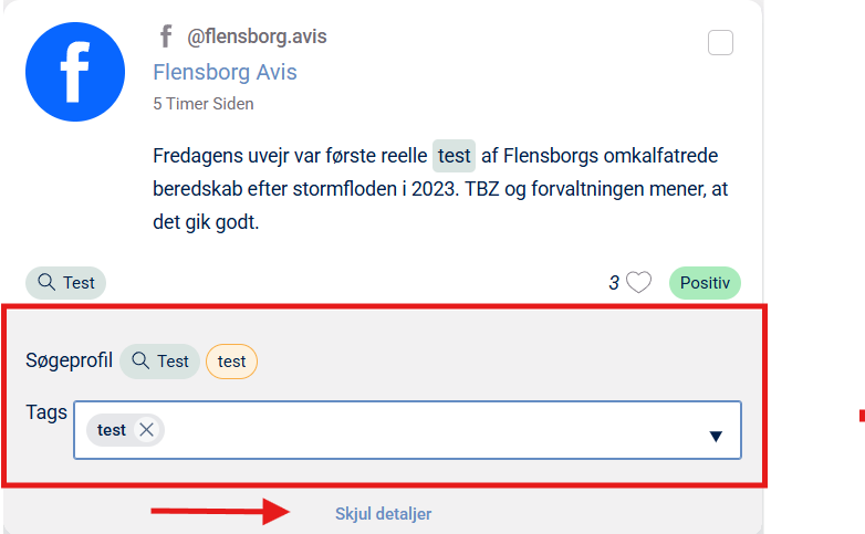 Du kan også tagge en post direkte ved at klikke på "Vis Detaljer" og derefter skrive, hvad taggen skal hedde.