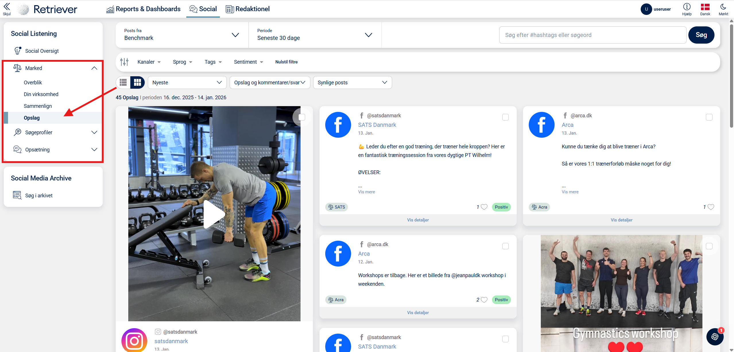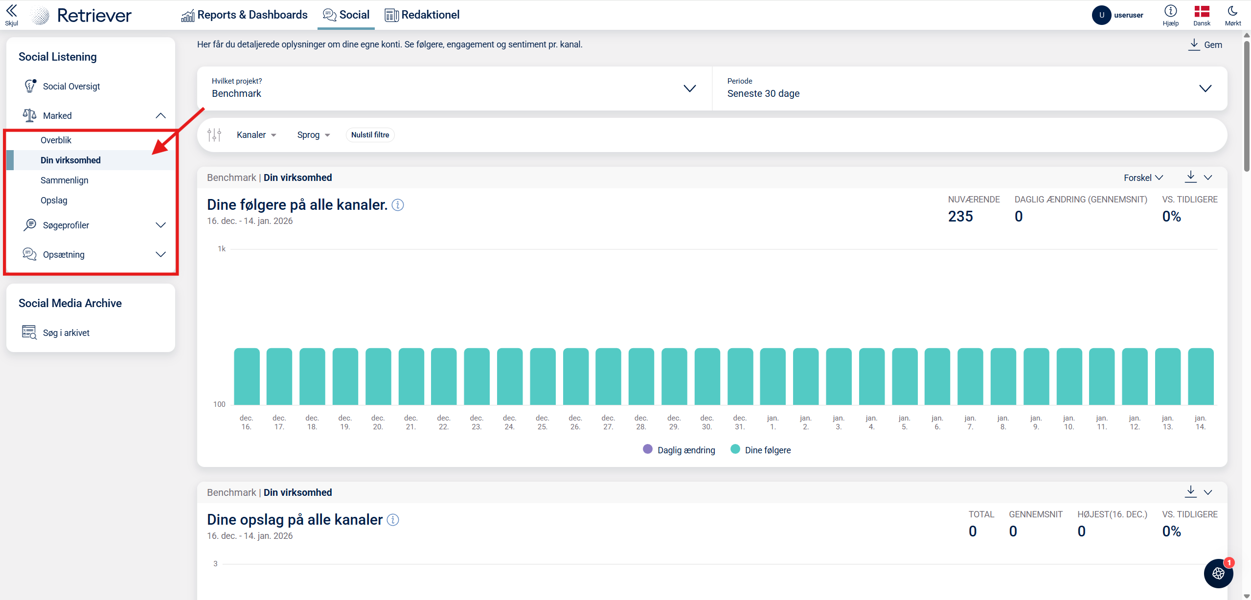 Under Overblik får du en opsummeret oversigt over alle konti i Marked, inklusive Ejede konti og Benchmarks.