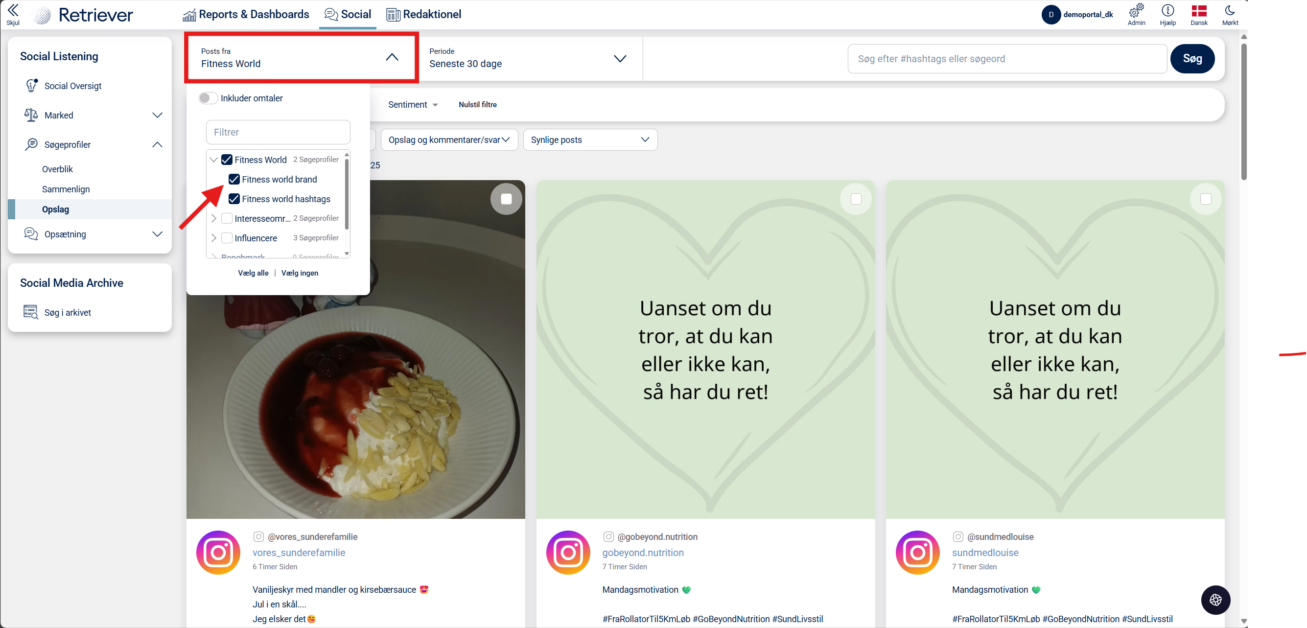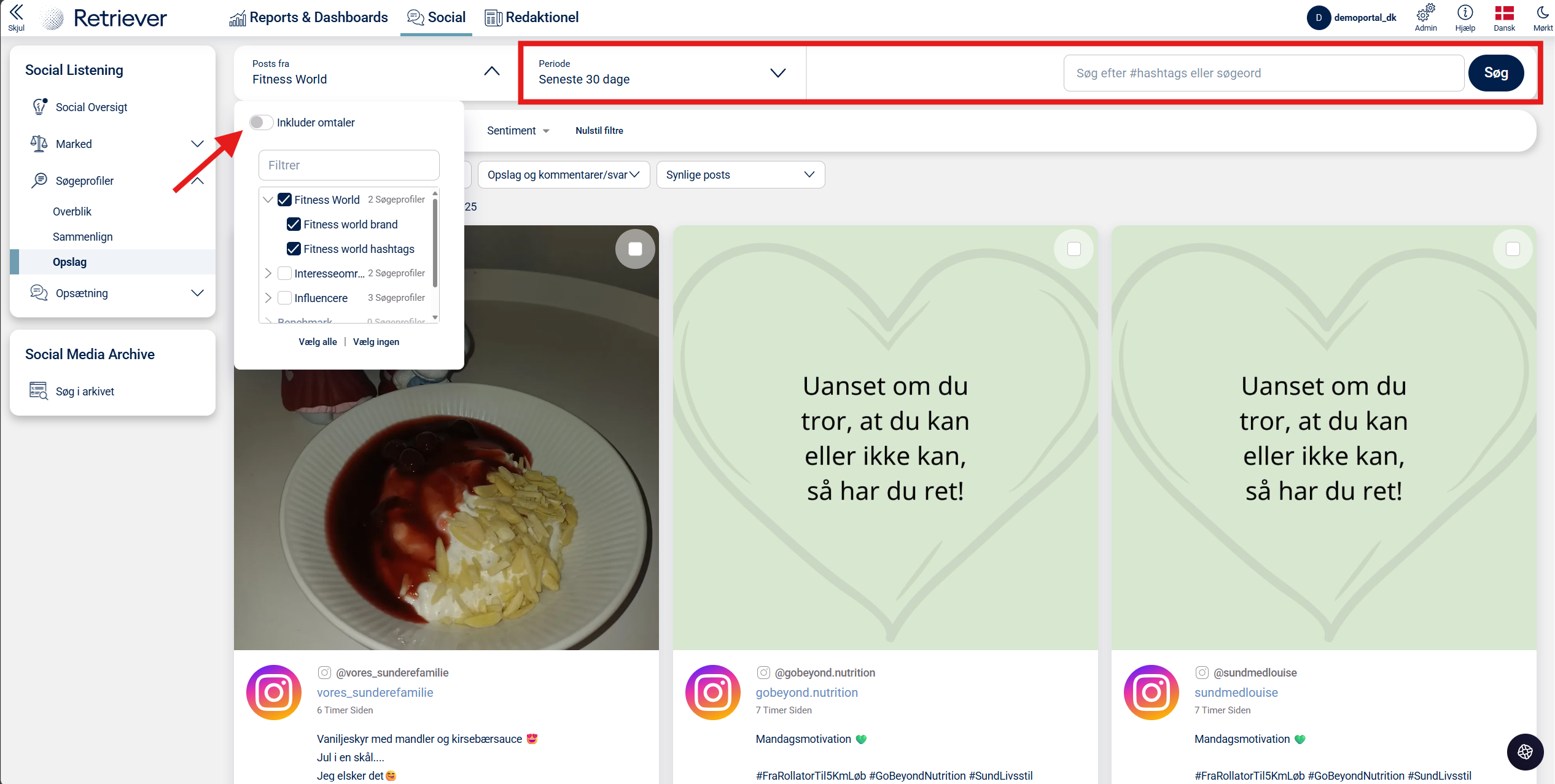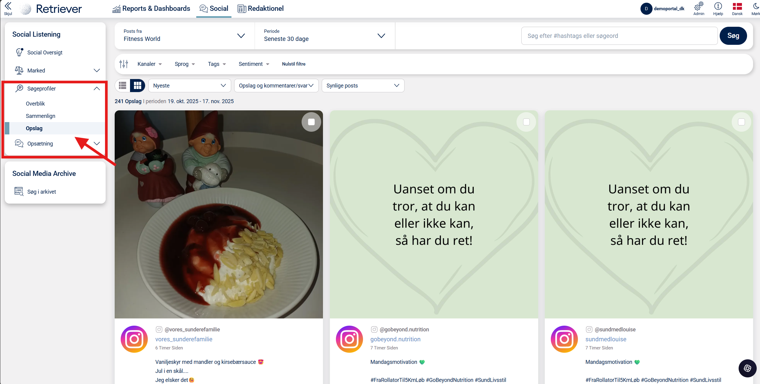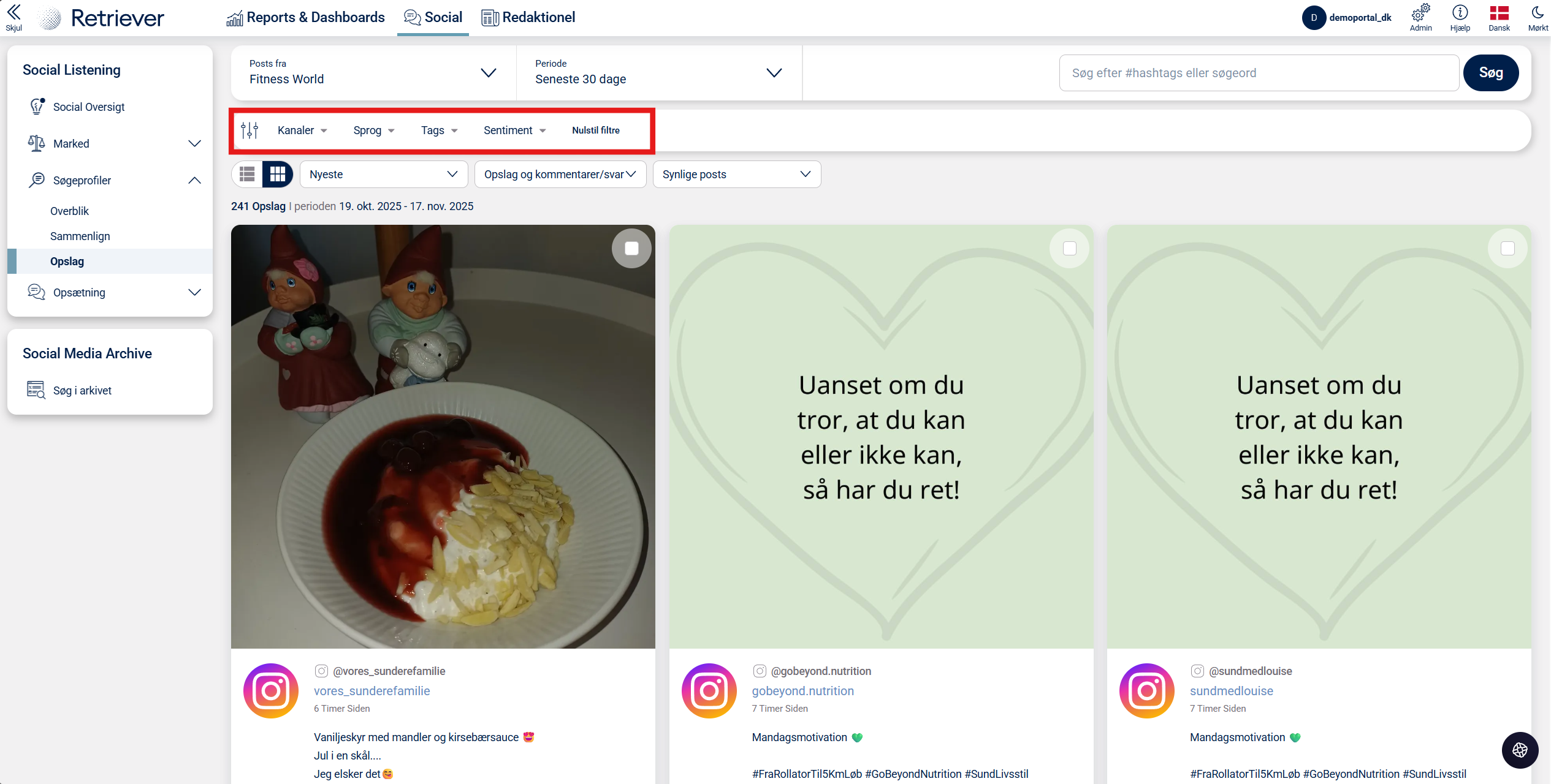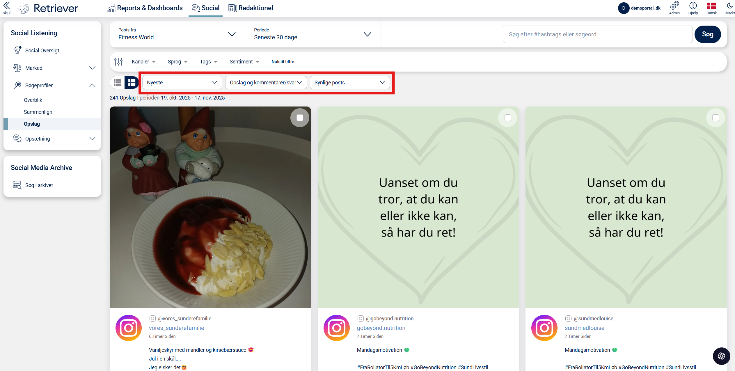 Under fanen Opslag kan du bruge en række forskellige filtre til nemmere at sortere alle opslag.