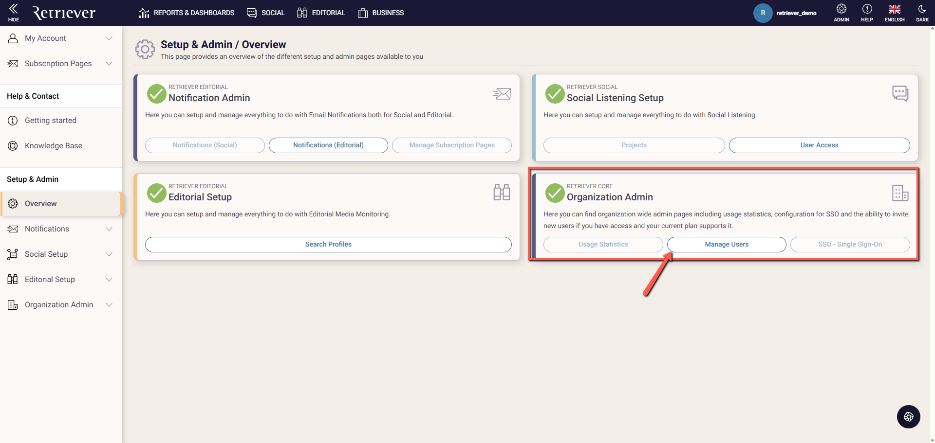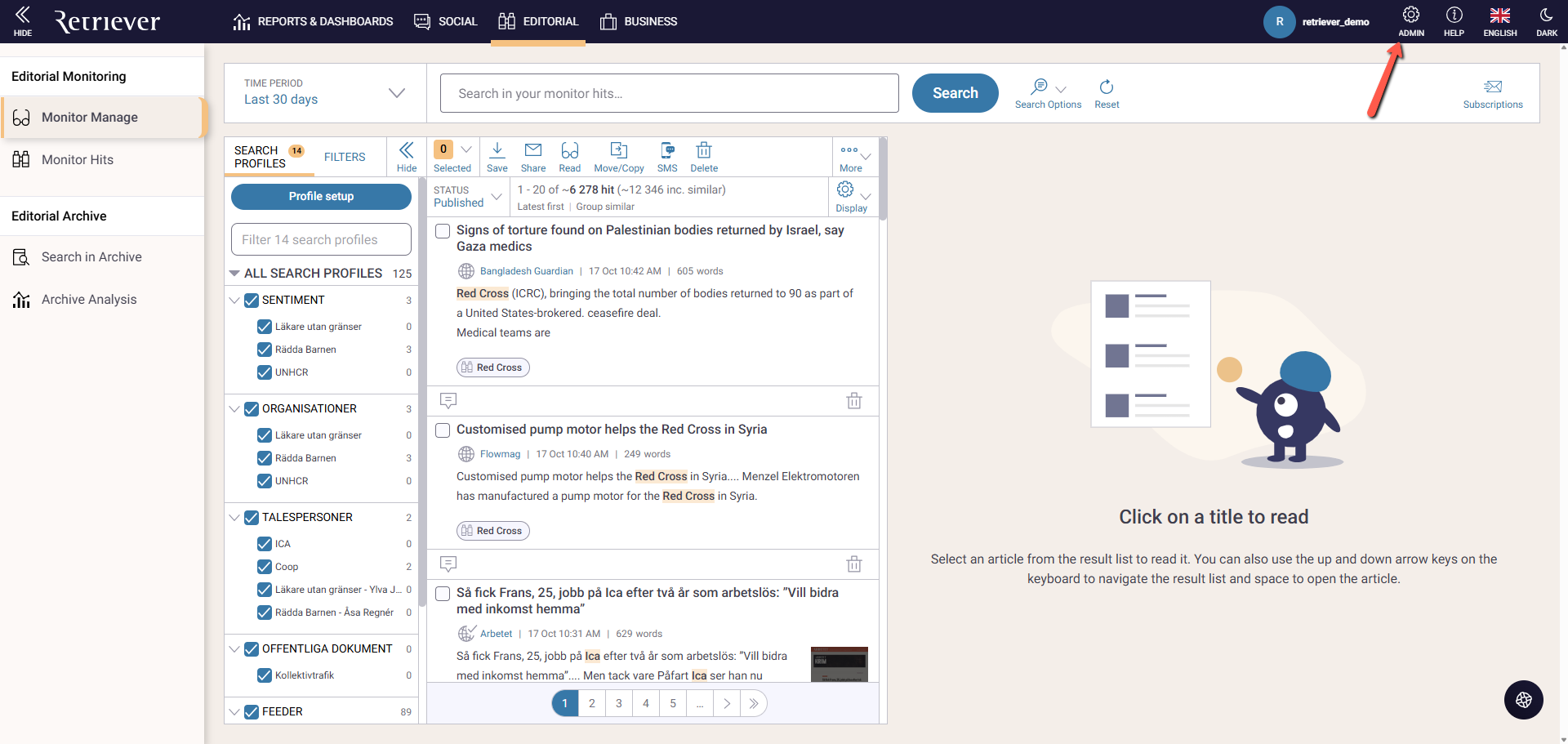 If you have an editor account you can manage and add new users to the platform, by clicking on the Admin button in the top right corner.