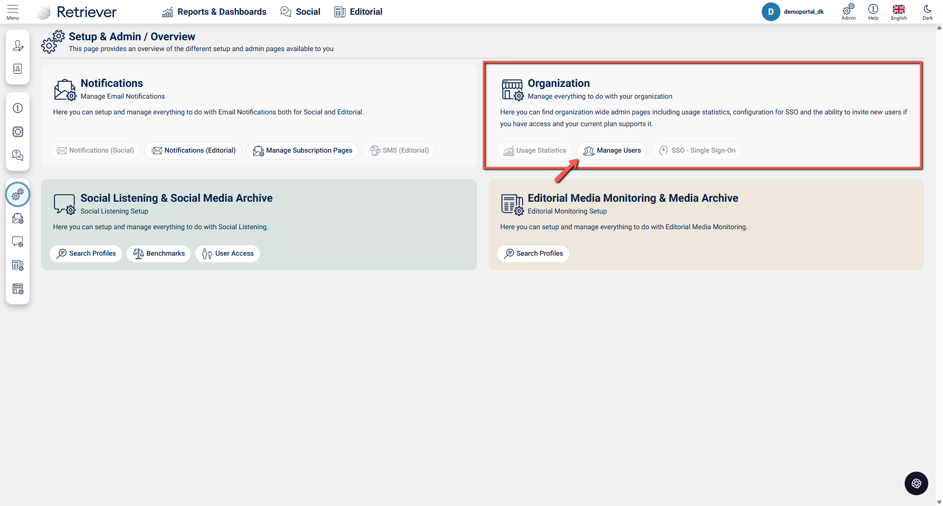 Under "Organization" click on Manage Users.