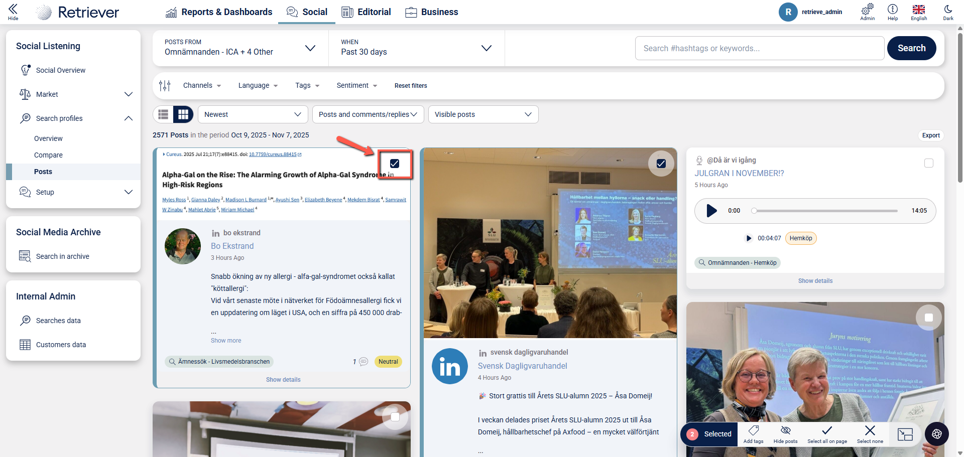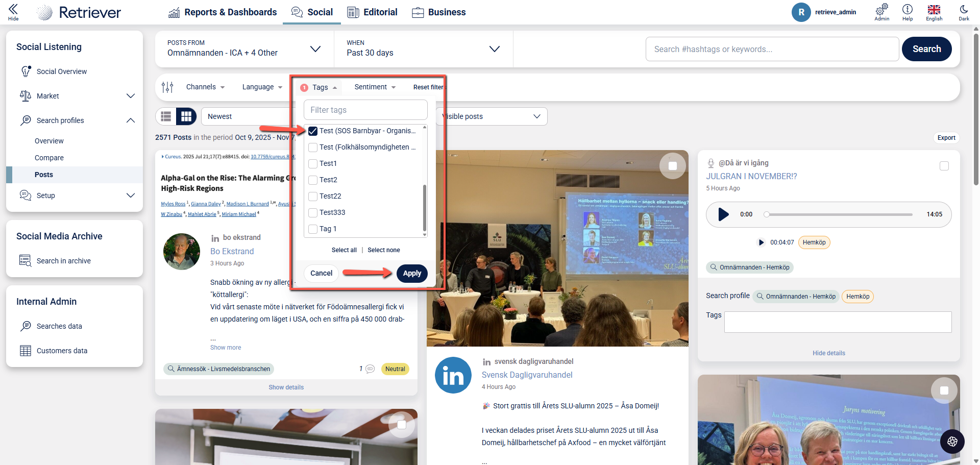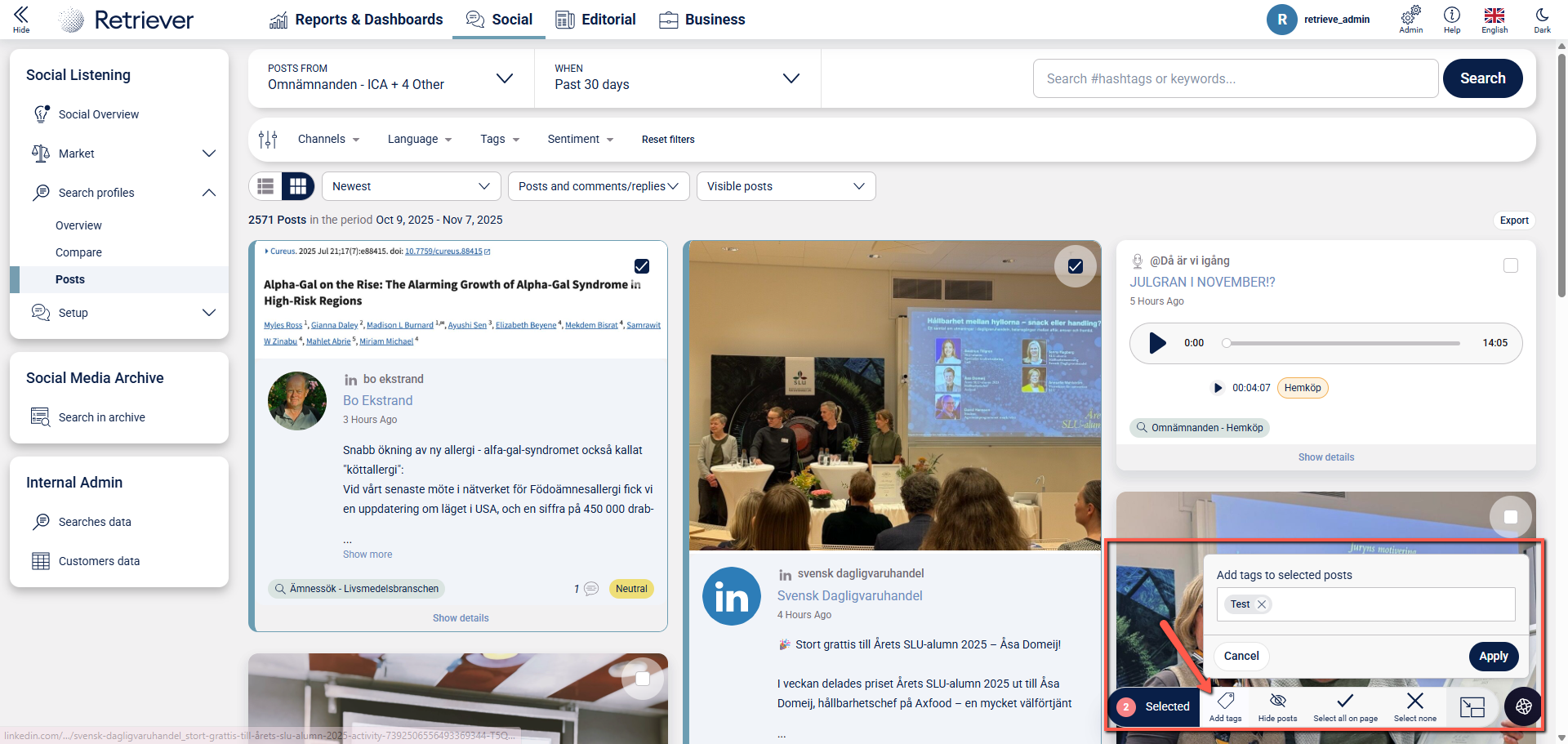 How you tag selected posts in Listen