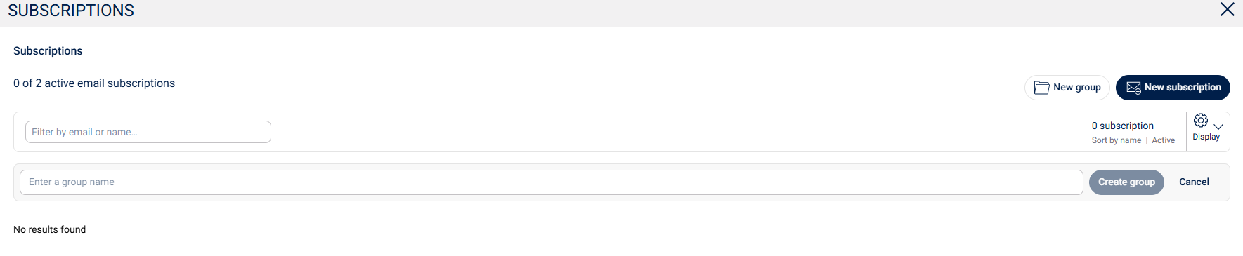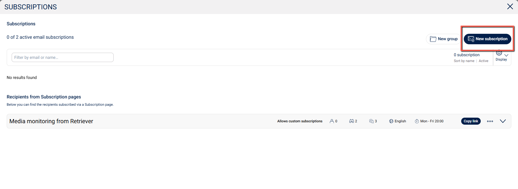 If you choose New group, you will be taken to a new window from which you can create a separate subscriptions group. This can be the board group, the communications department or anything else.