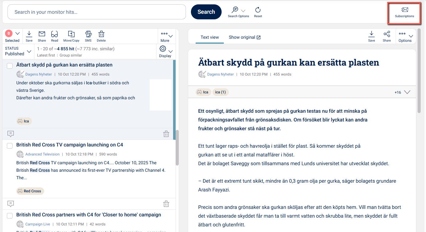 Click the icon Subscriptions in the right upper corner of Monitor Manage