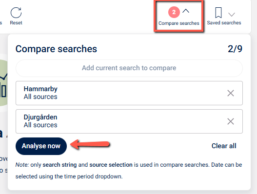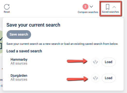 3. Go to "Saved searches" and select the ones of your saved profiles that you want to compare by clicking the icon.