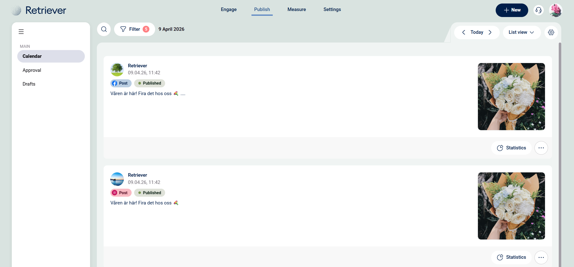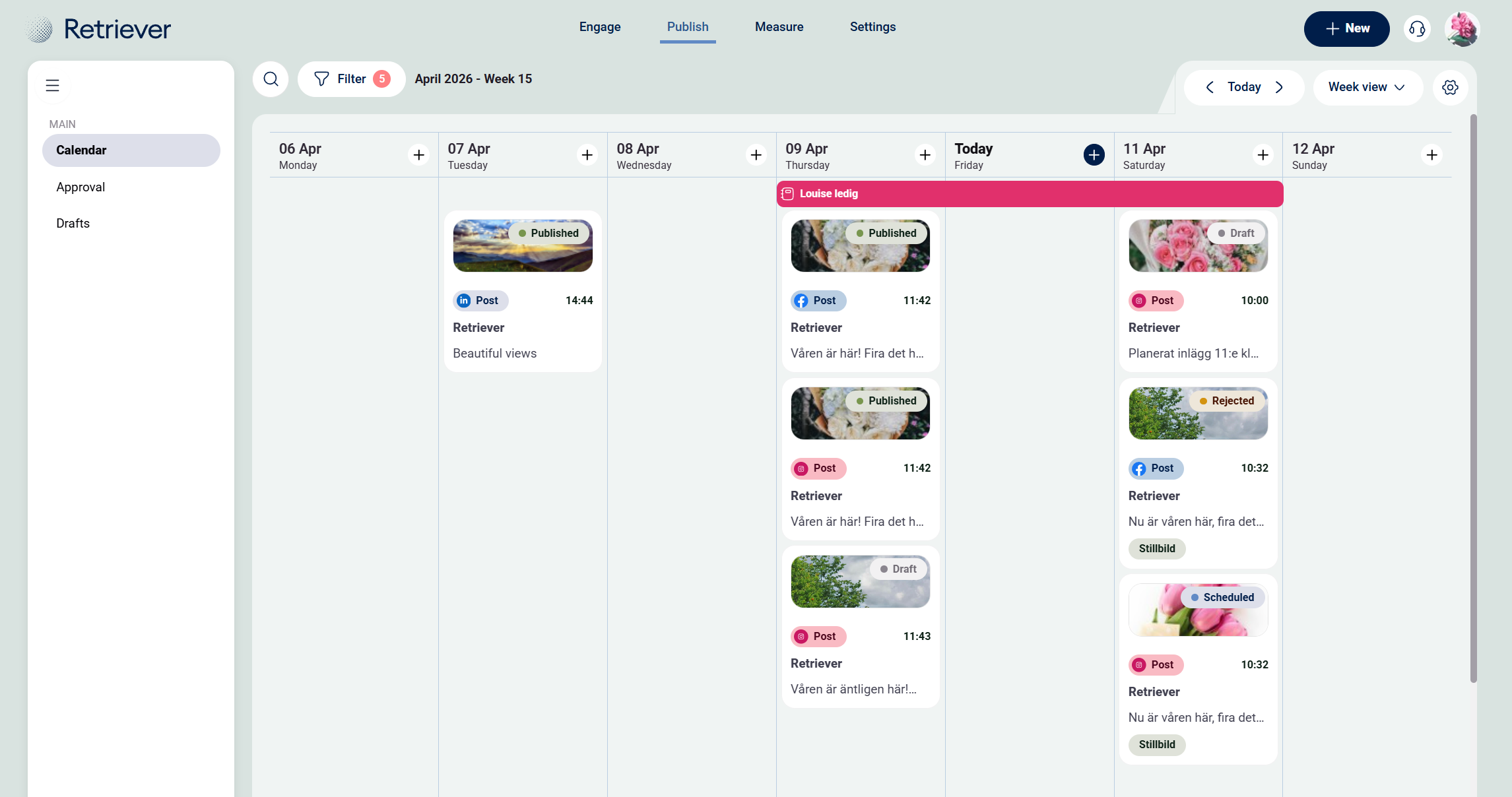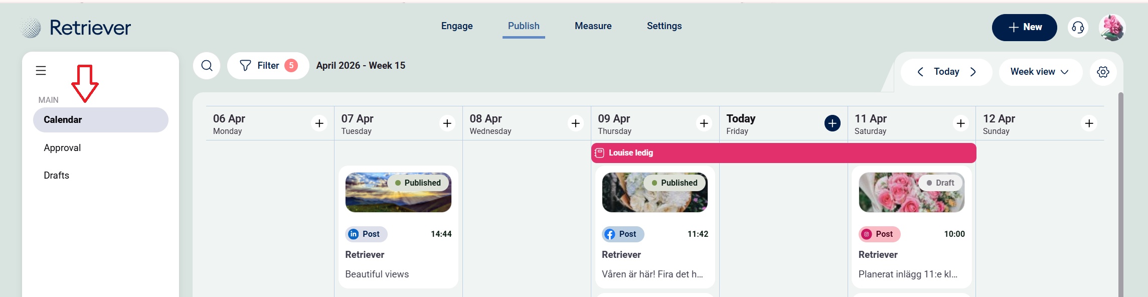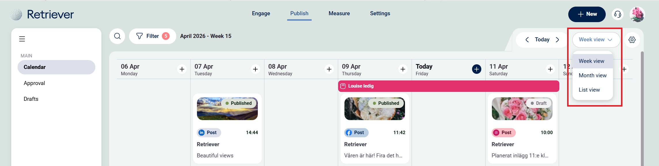 View a whole month in Publish one weekly or a specific day with previews of your content