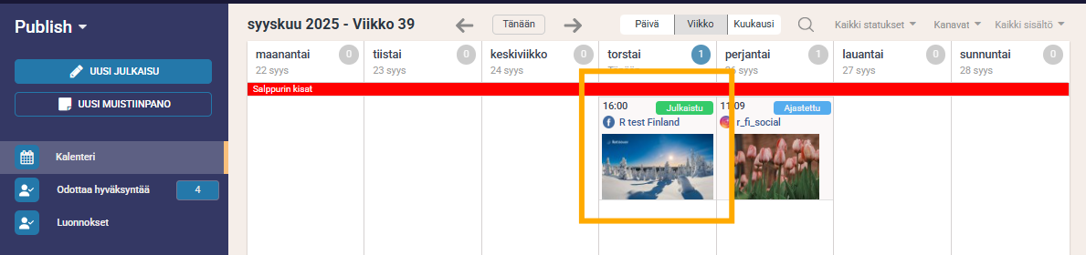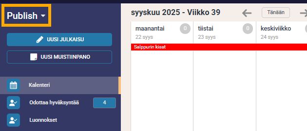 Kun julkaisu on hyväksytty, se ilmestyy Publishin kalenteriin.