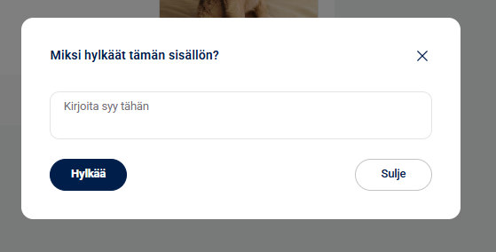 Jos haluat hylätä julkaisun, klikkaa Hylkää ja voit sen jälkeen kirjata syyn, miksi julkaisu hylätään.