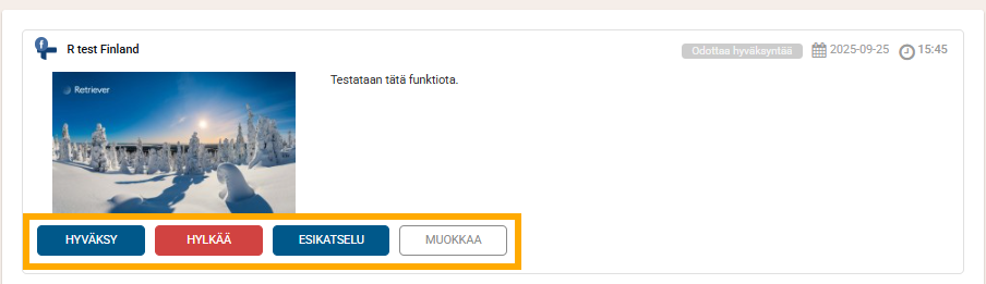 Vaihe 2: Klikkaa Odottaa hyväksyntää ja valitse, hyväksytkö vai hylkäätkö julkaisun. Jos sinulla on tarvittavat oikeudet, voit myös halutessasi muokata julkaisua tämän toiminnon kautta ennen hyväksymistä.