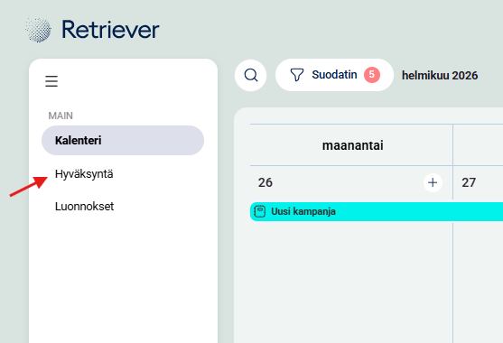 1. Siirry Publishissa hyväksyntää odottaviin postauksiin vasemmasta valikosta Hyväksyntä-välilehdelle.