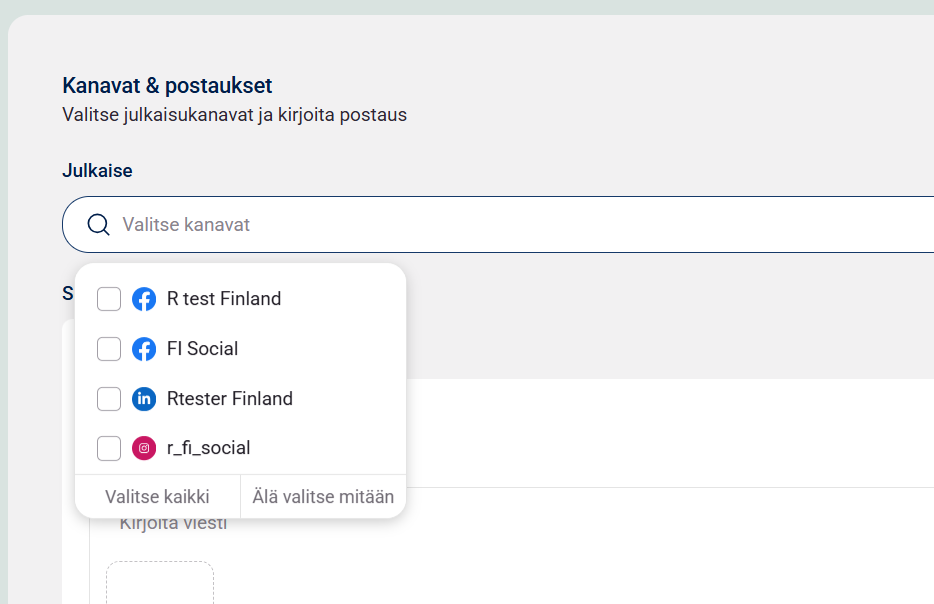 3. Valitse kanava(t), jolle haluat tehdä julkaisun