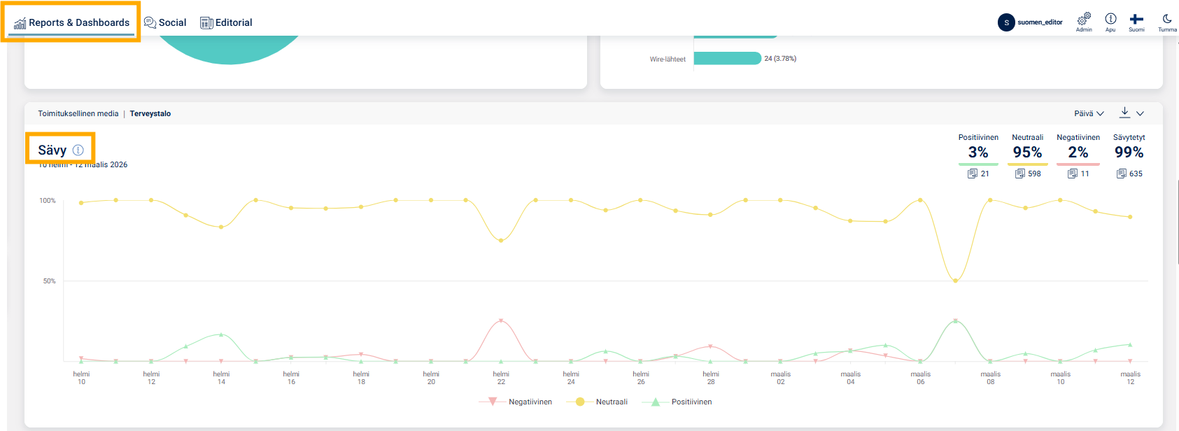 Kun olet tehnyt sävytystä pitemmällä aikavälillä säännöllisesti, voit analysoida sävyä Reports & Dashboards -osiossa.