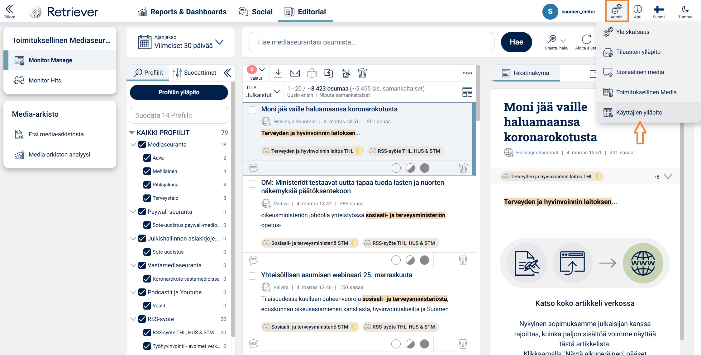 Jos sinulle herää kysymyksiä tähän liittyen, ole yhteydessä omaan asiakasvastaavaasi, palvelutiimiimme osoitteessa info@retriever.fi tai lähetä viestiä portaalin chat-toiminnon kautta!