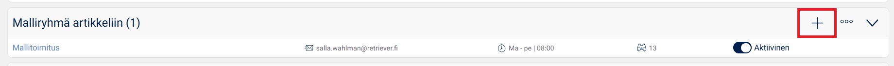 Alla näet, miltä perustettu ryhmä näyttää, kun siihen on lisätty yksi vastaanottaja. Kun klikkaat + -merkkiä, voit lisätä uusia tilaajia raportille. Kolmesta pisteestä pääset vaihtamaan ryhmän nimen tai vaihtoehtoisesti poistamaan sen.