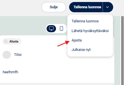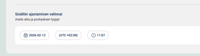 2. Valitse sivun alaosasta luomaasi julkaisuun päivämäärä ja kellonaika, mille julkaisu halutaan ajastaa