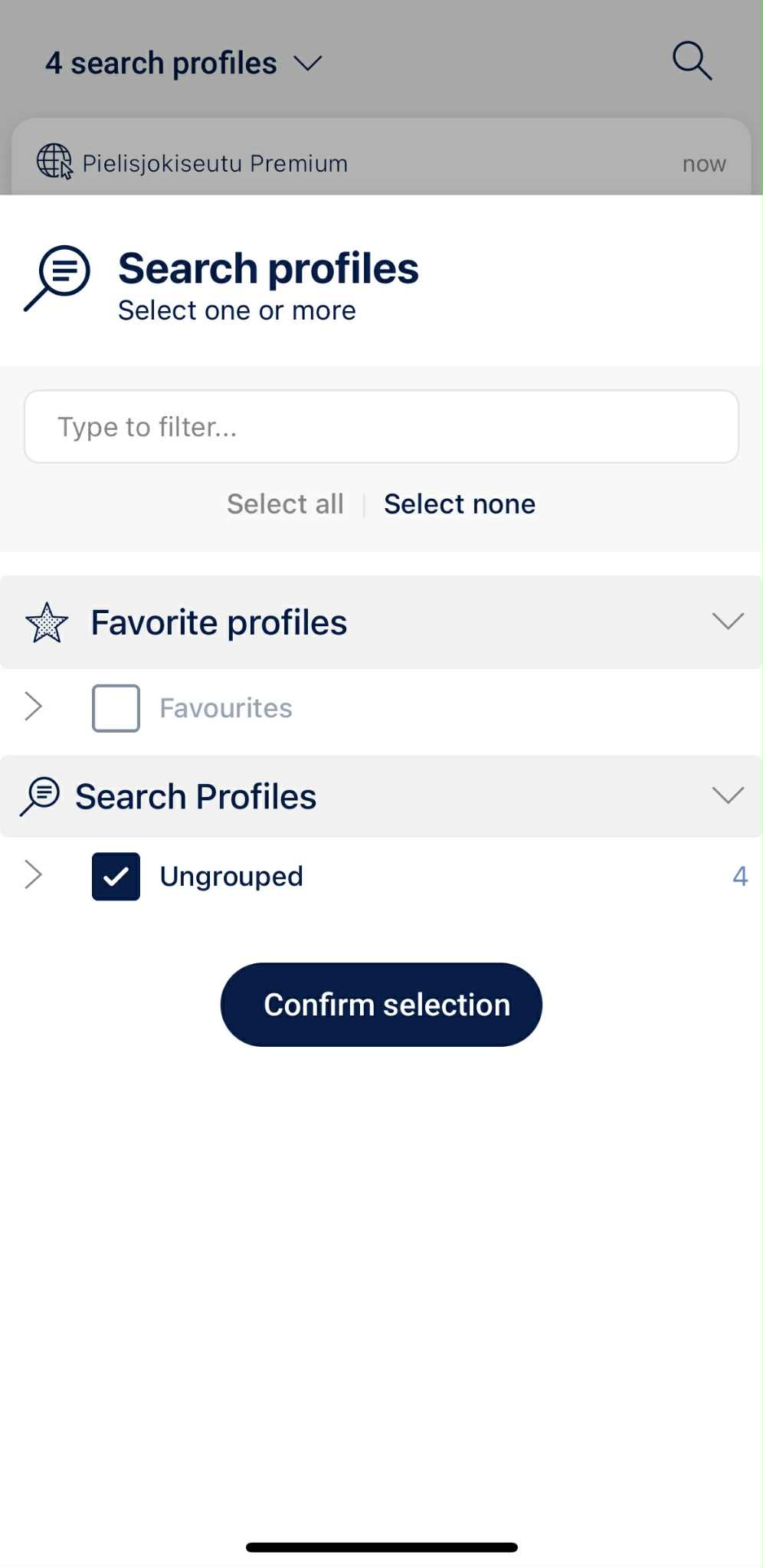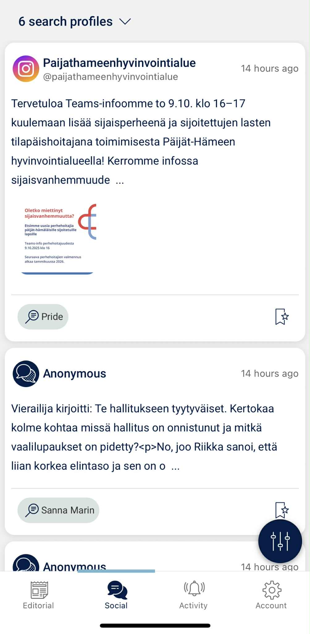 Sivun yläreunasta voit avata alasvetovalikon, jonka kautta voit määritellä, mitä profiileja haluat seurata: