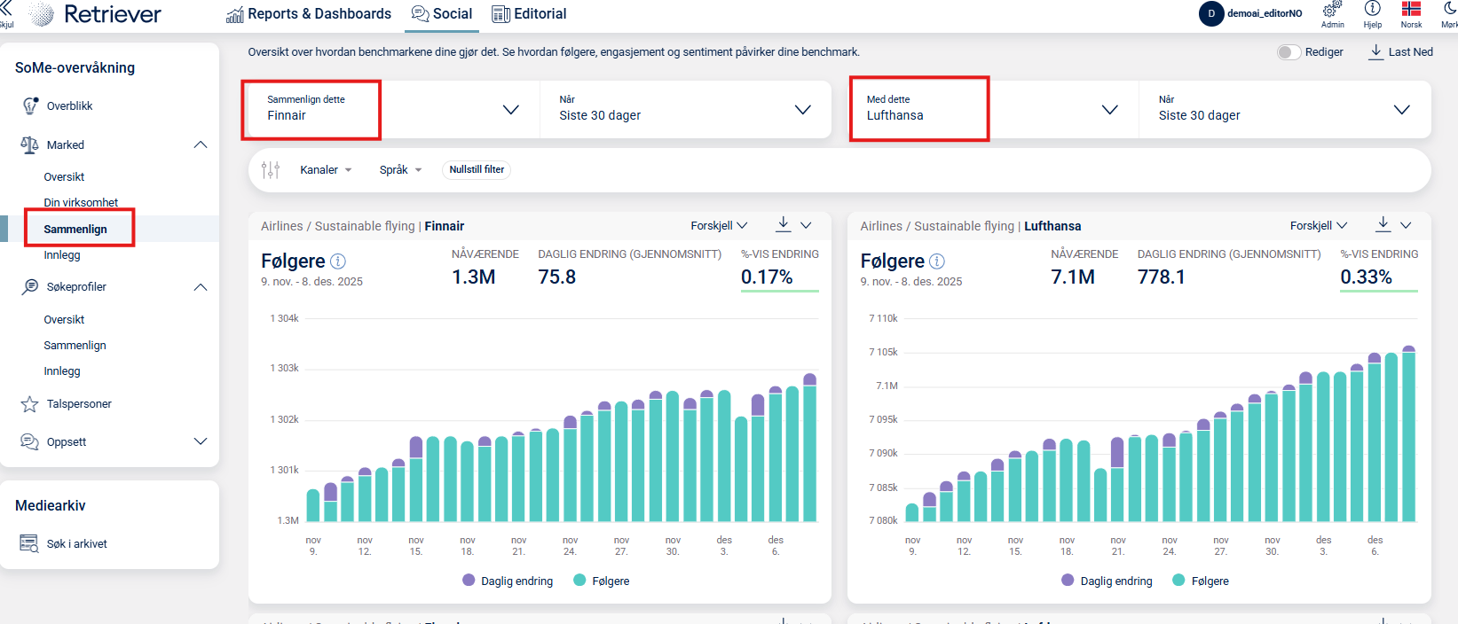 Under Sammenlign har du muligheten til å sammenligne to kontoer mot hverandre og hente ut nyttig innsikt.