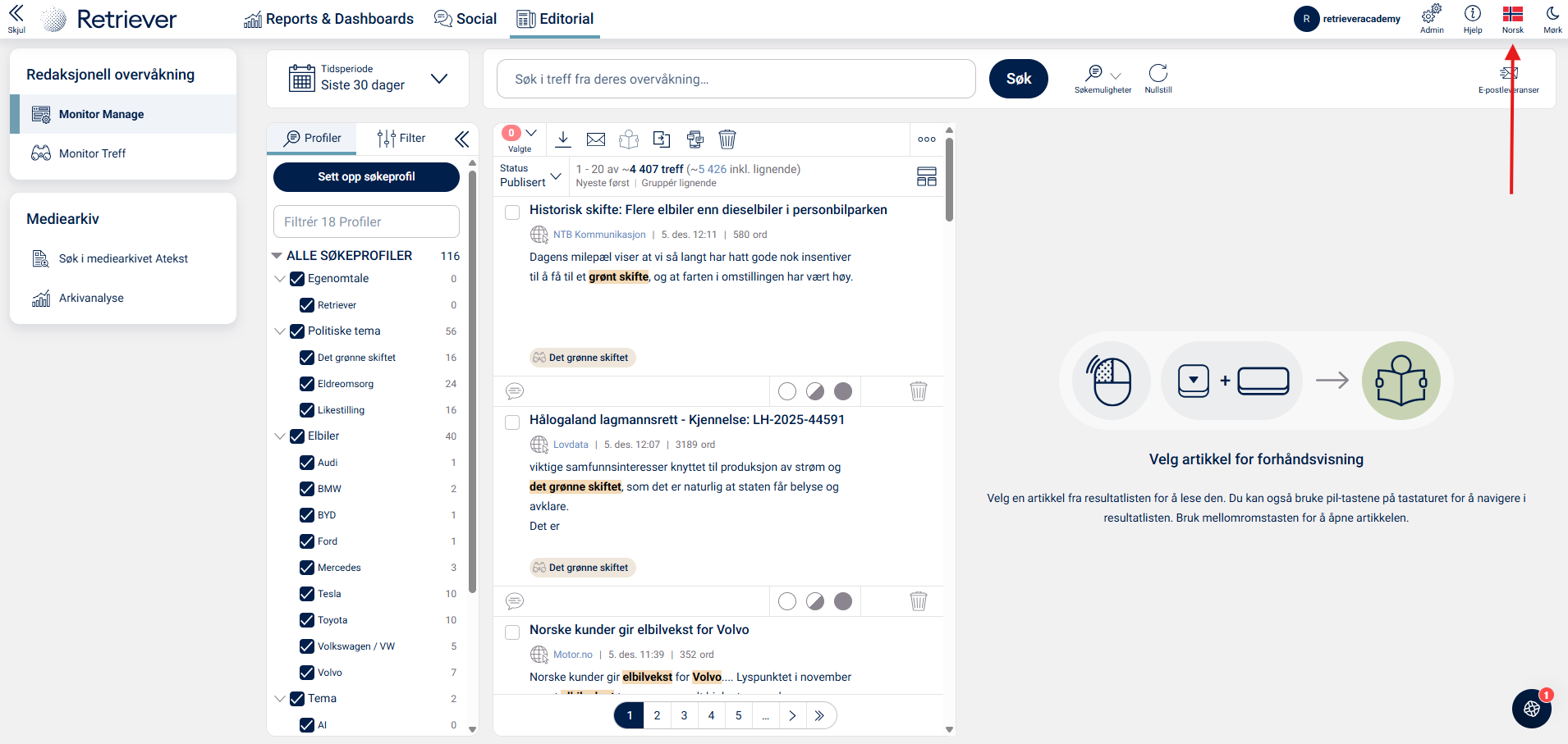 Hvordan endrer jeg språk i portalen? Du kan endre språk ved å klikke på flagget øverst i høyre hjørne: