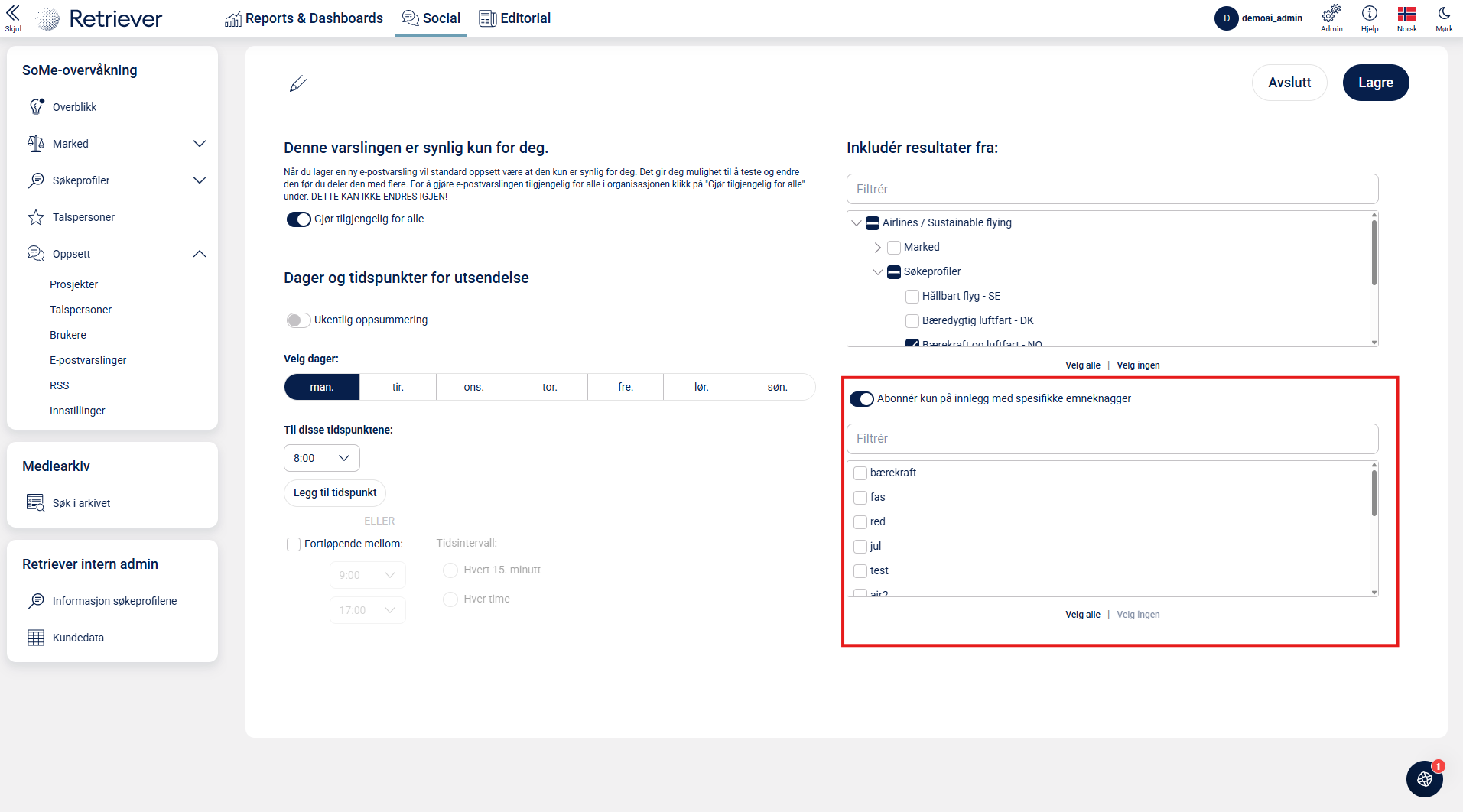 Til slutt kan man også velge å få varsling fra innlegg med spesifikke tags.