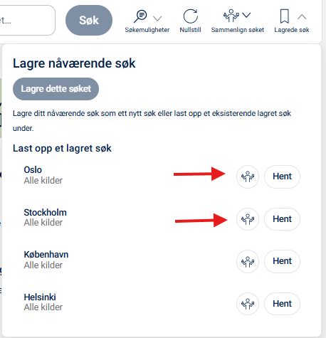 Under "Lagrede søk" velger du det eller de søkene du ønsker å sammenligne ved å trykke på dette ikonet: