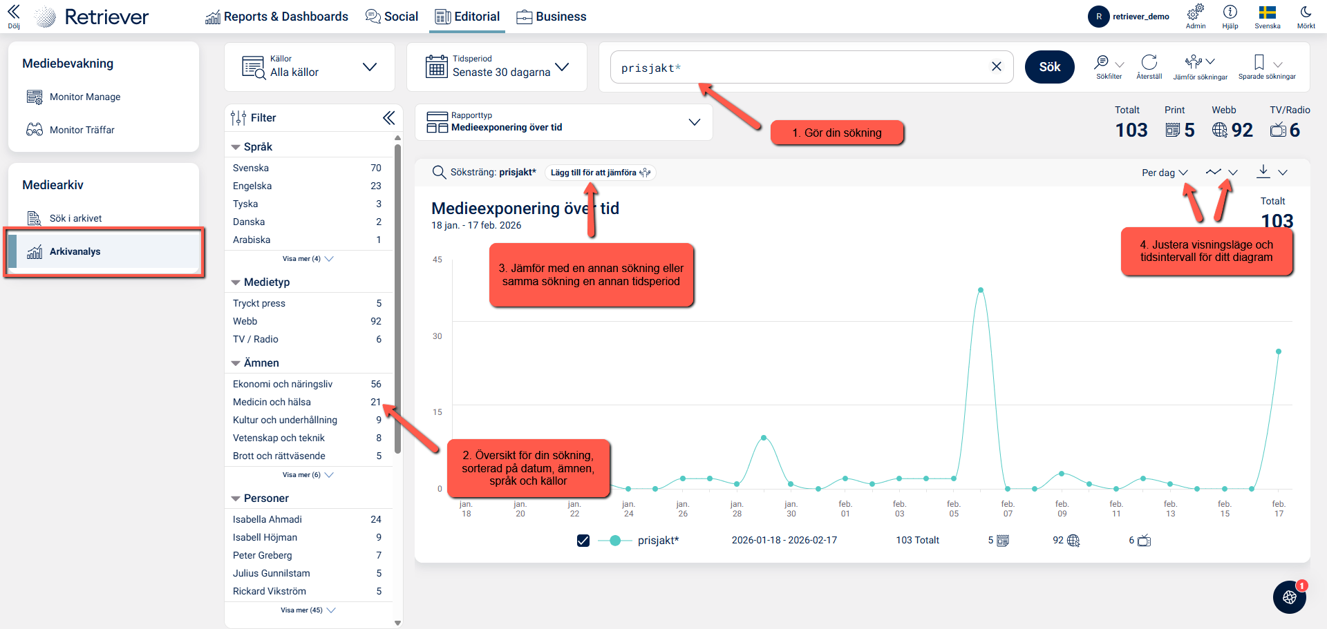Här följer en guide över hur du analysera din sökning i Arkivanalys.
