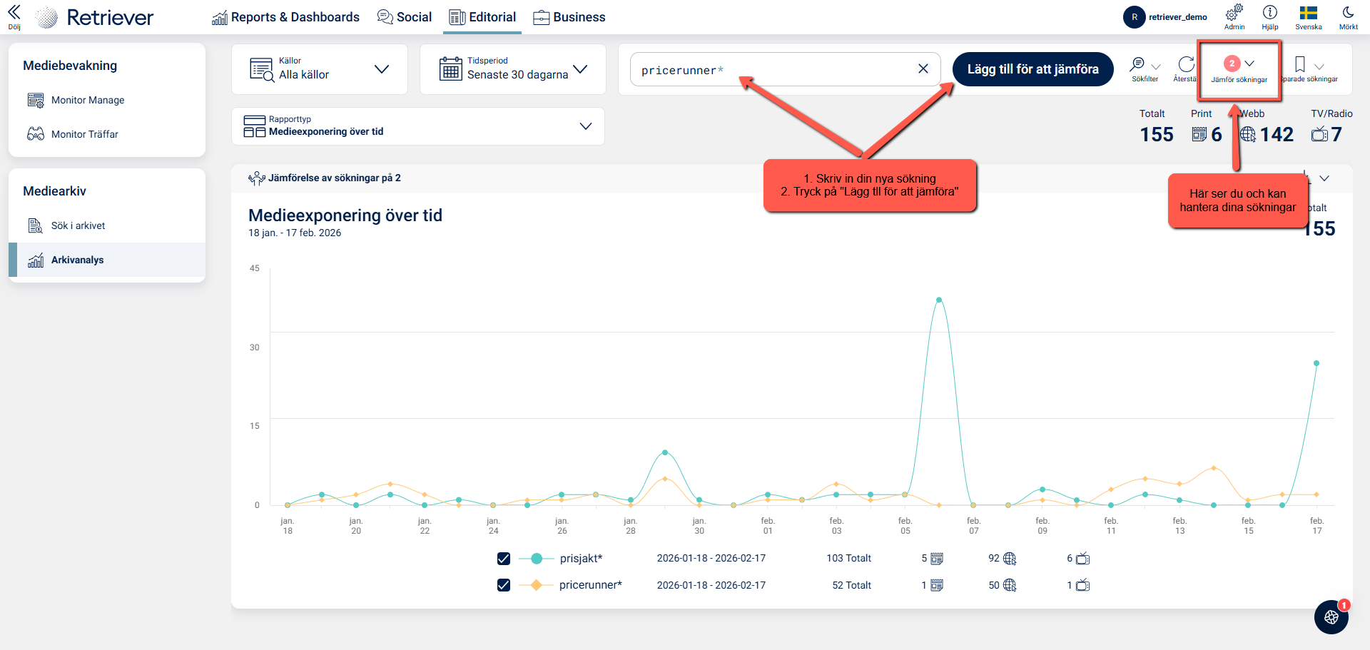 Önskar du jämföra två eller flera sökningar med varandra gör du såhär: