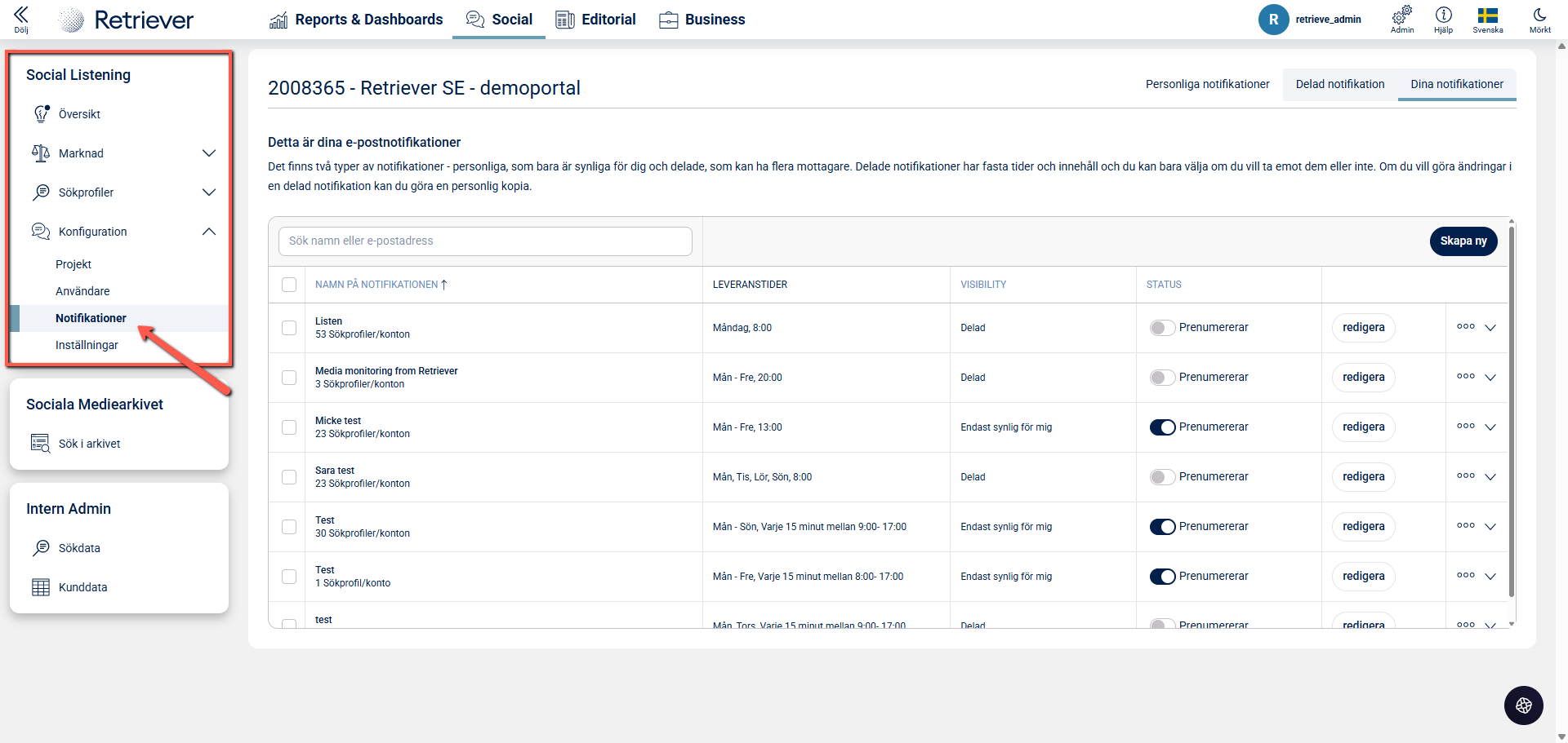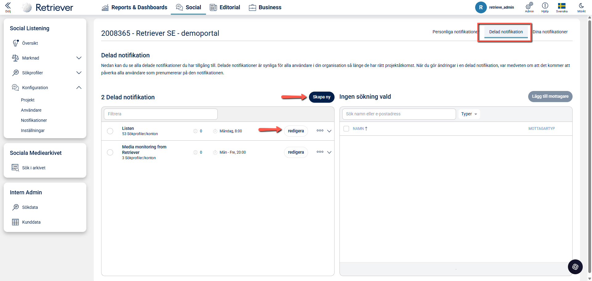 Har du Admin behörighet i Listen finns möjlighet att skapa delade aviseringar för din organisation. Delade aviseringar gör det möjligt för övriga användare/prenumeranter att ta del av dessa notifikationer.