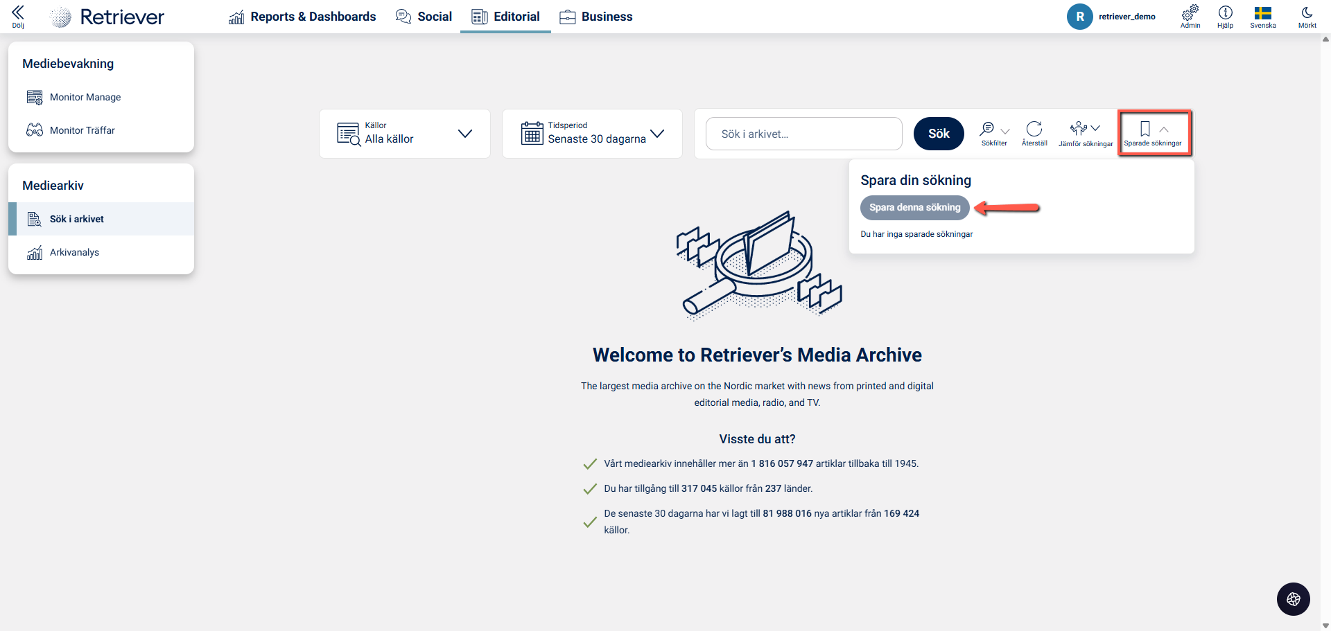 Hur sparar jag sökningar i Mediearkivet?