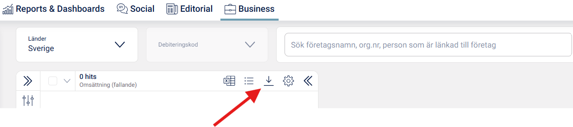 4. När du importerat företagen blir dessa automatisk utvalda, du har då möjlighet att göra en fritextsökning eller använda sökfiltret för att söka bland dina importerade företag.