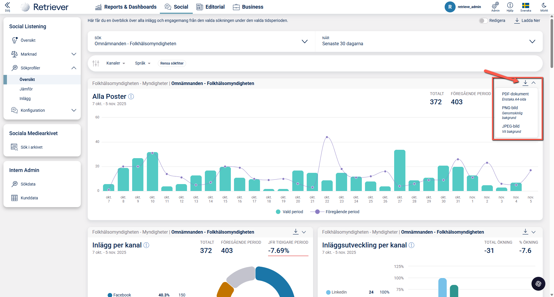 Ja, högst upp till höger vid varje ruta kan du göra detta. Där kan du också välja vilket format du vill ladda ned diagrammet i.