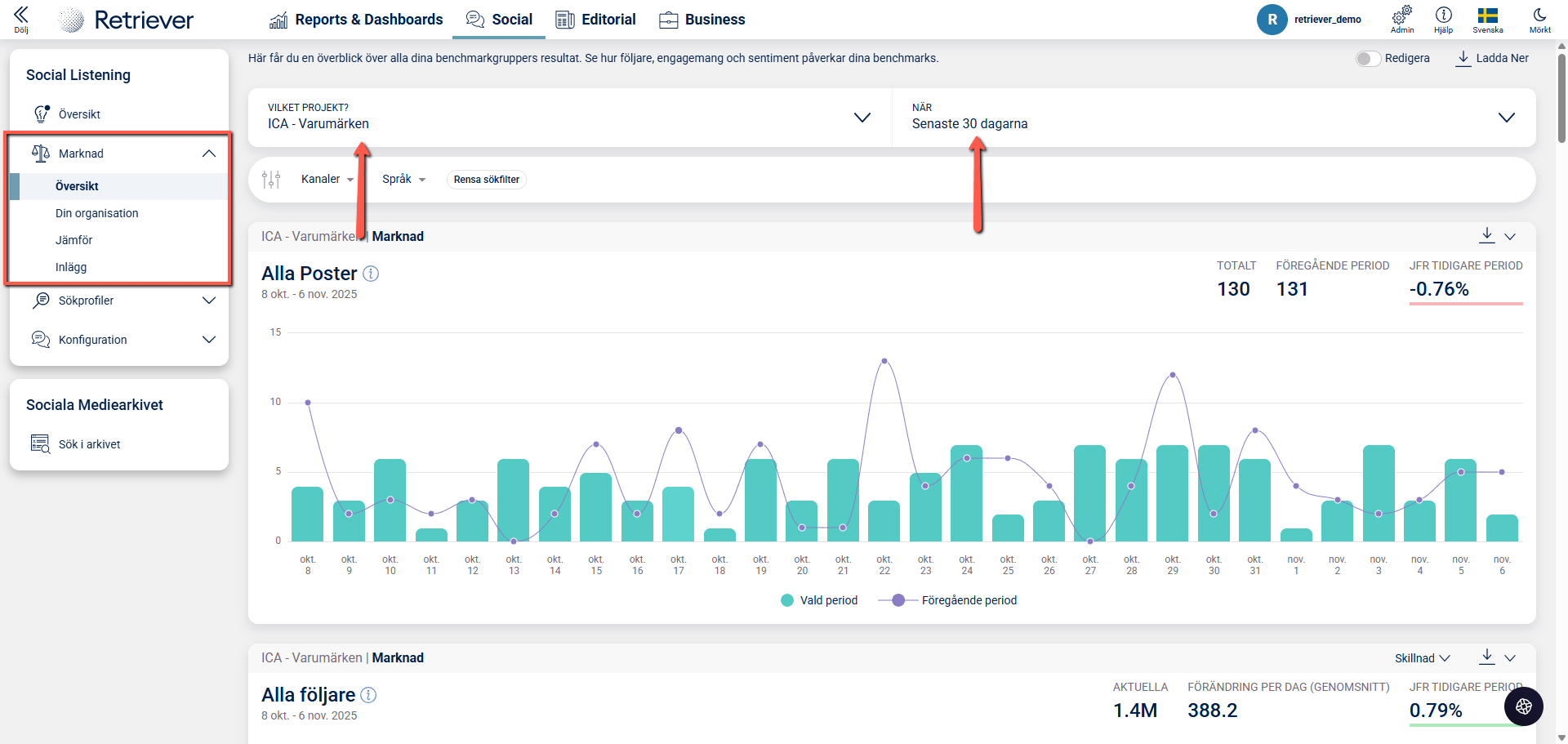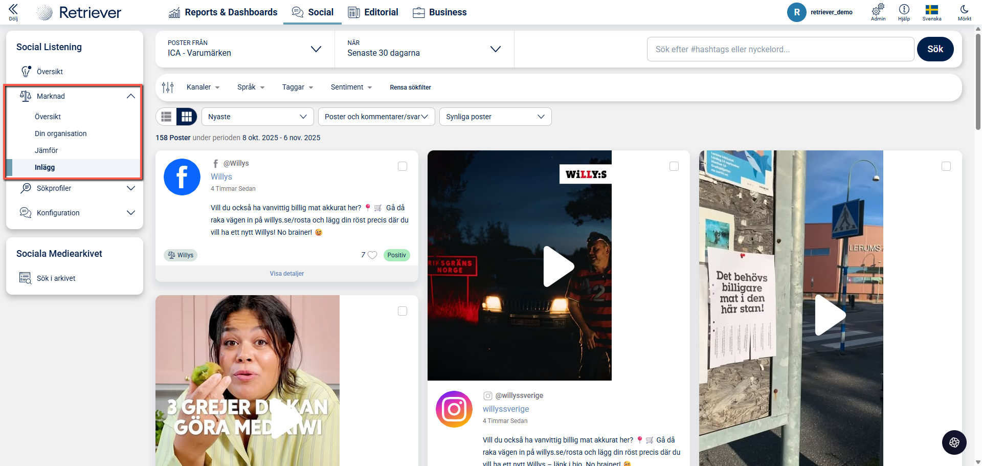 Under Inlägg får du samtlig statistik från en specifik kanal av ett specifikt konto.