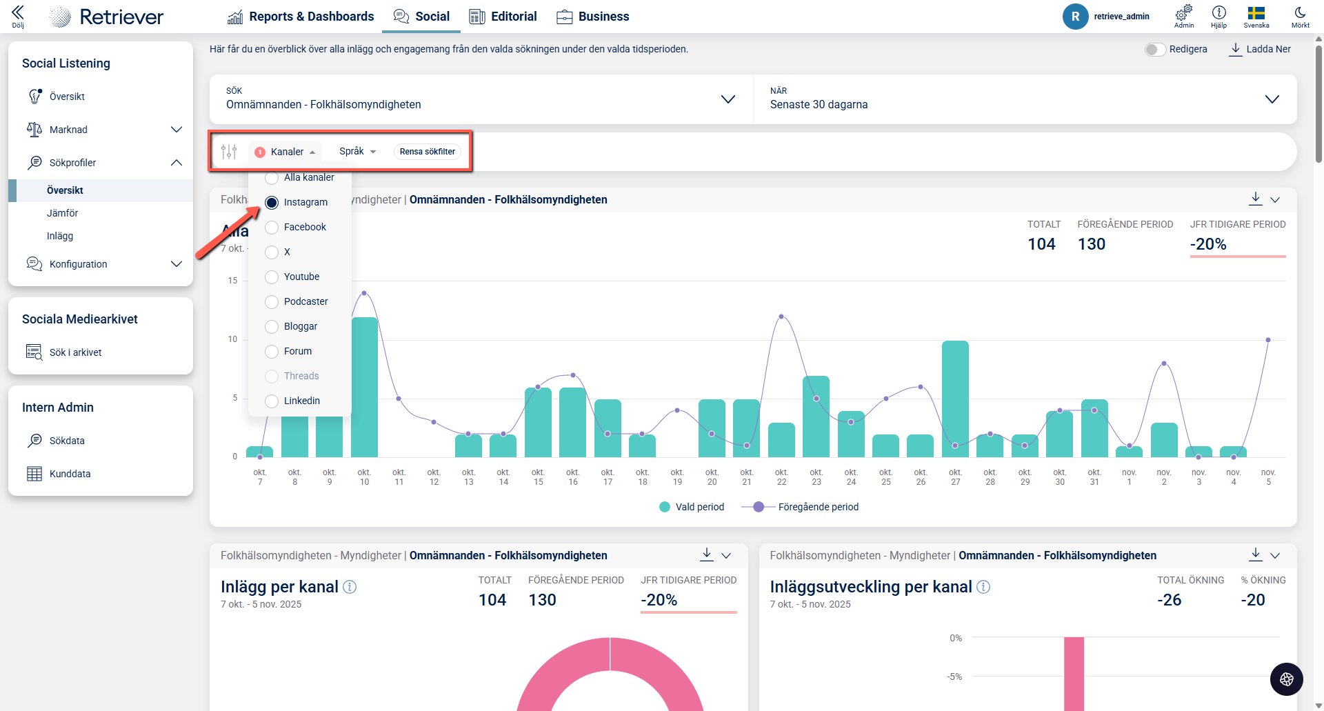 Du kan även välja att filtrera på specifika kanaler och få denna typ av statistik men för enbart den valda kanalen.