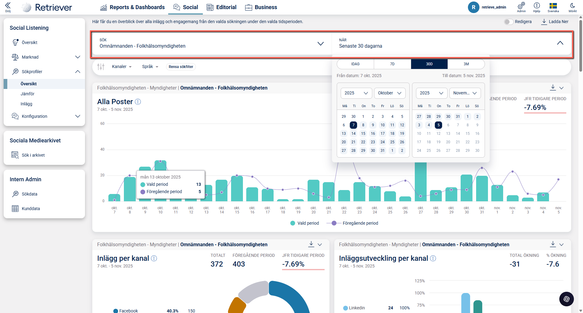 Här finner du en kombinerad statistik för aktuell sökprofil. Detta samt vilken tidsperiod som är aktuell väljer du längst upp på sidan.