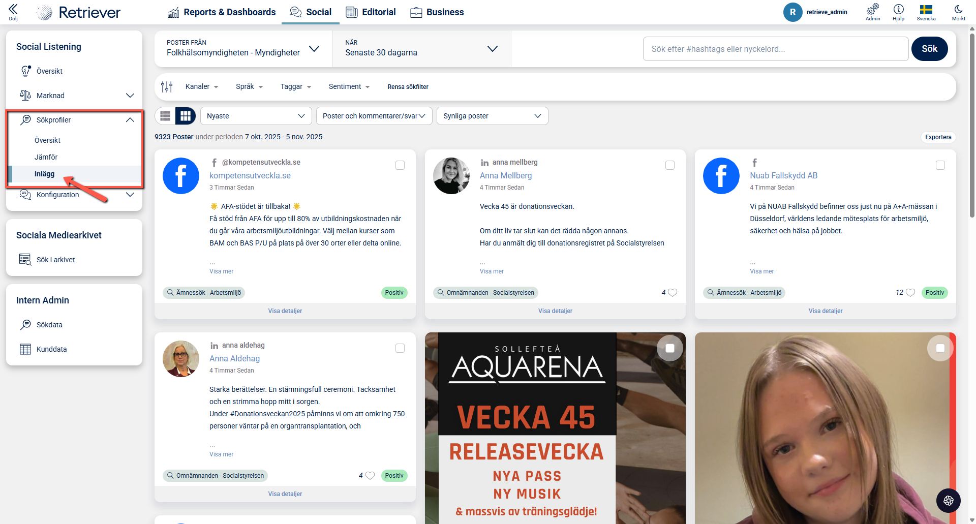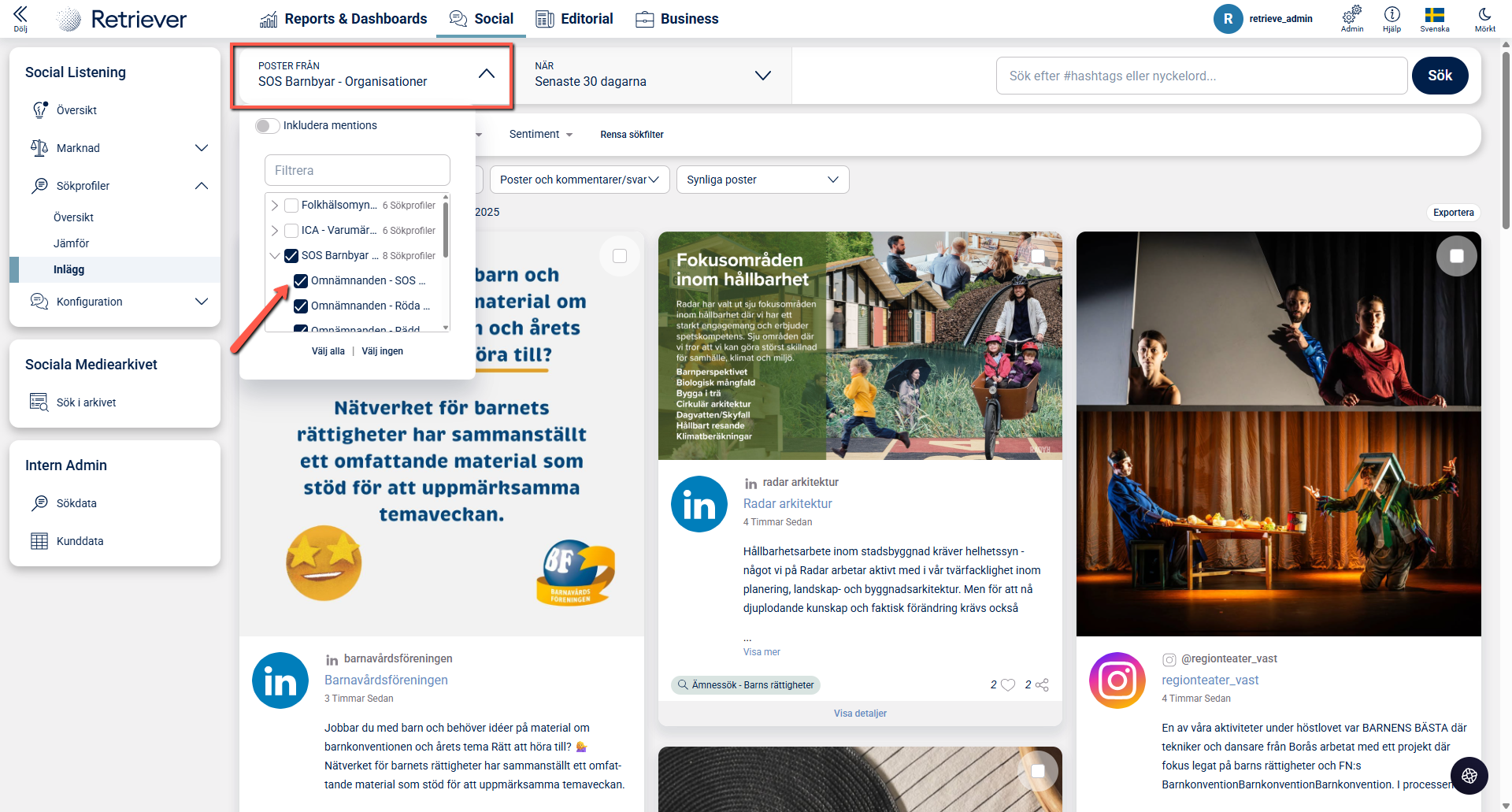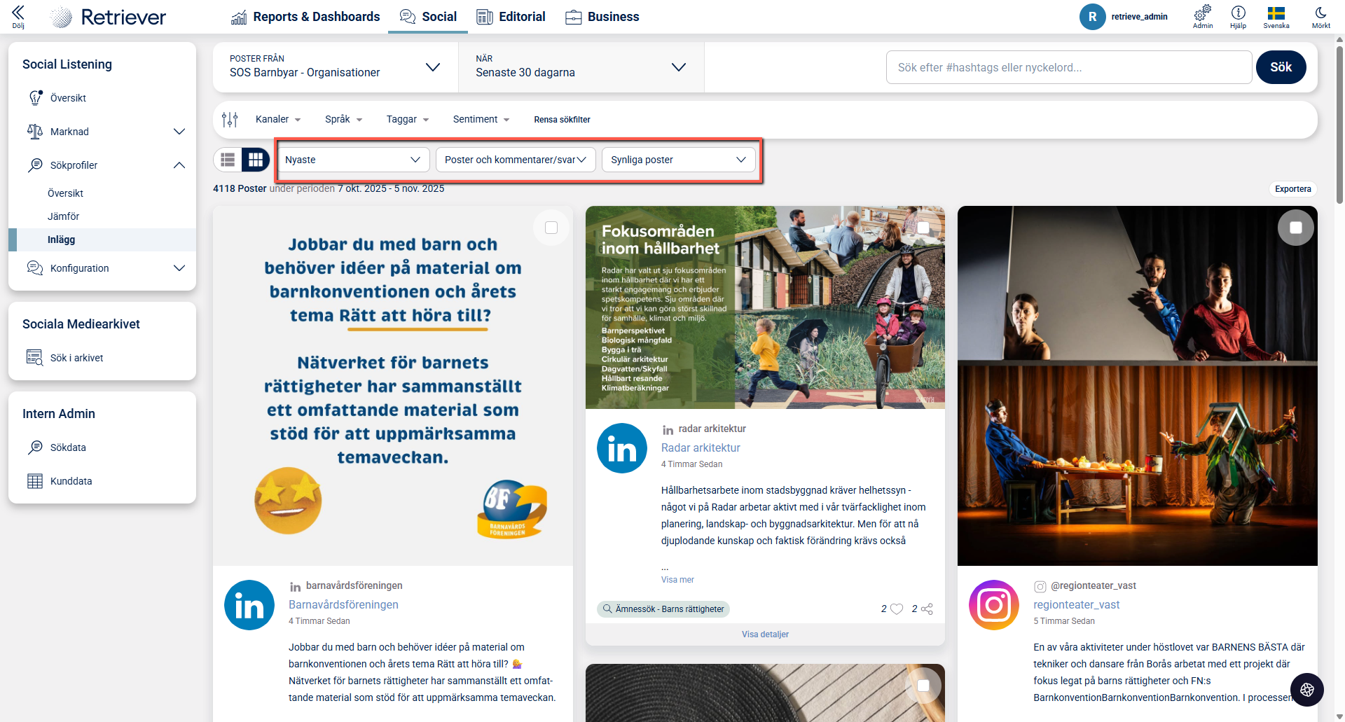 Under fliken Inlägg kan du använda dig av en rad olika filter för att enklare hitta bland alla poster som samlats in.